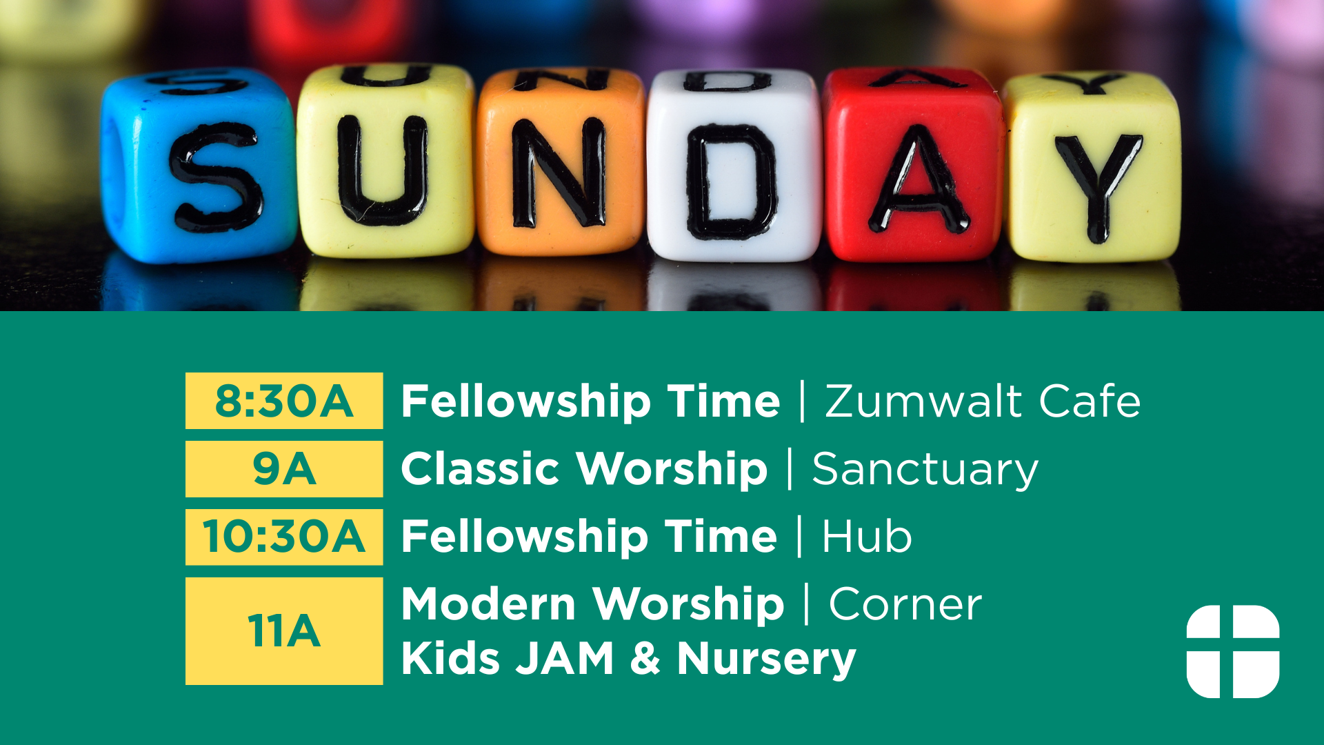 A 1-hour modern worship service begins at 11a in The Corner and includes prayer, a timely sermon, as well as uplifting praise songs led by a live band.